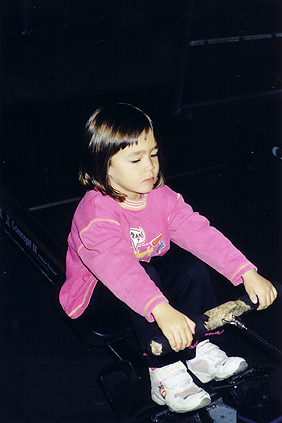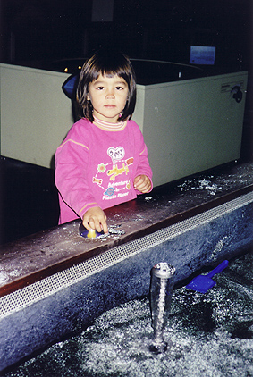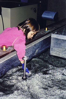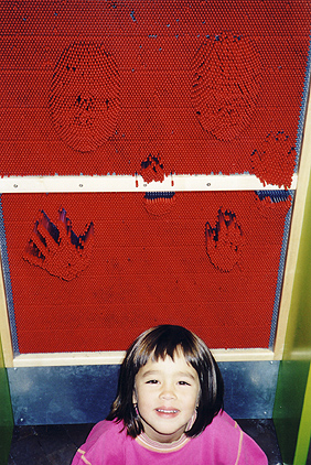 Helena inde i et legehus på Experimentariet.